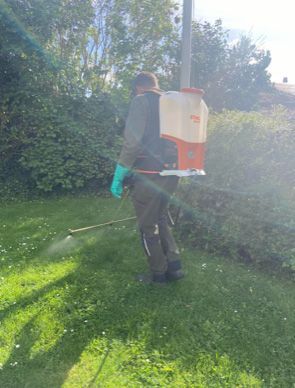 Sprøjteopgaven udføres som regel med rygsprøjte og spredebom, så din græsplæne bliver behandlet optimalt. Jeg bruger afdriftsreducerende dyser, som modvirker afdrift hvilket er godt for nærmiljøet.
